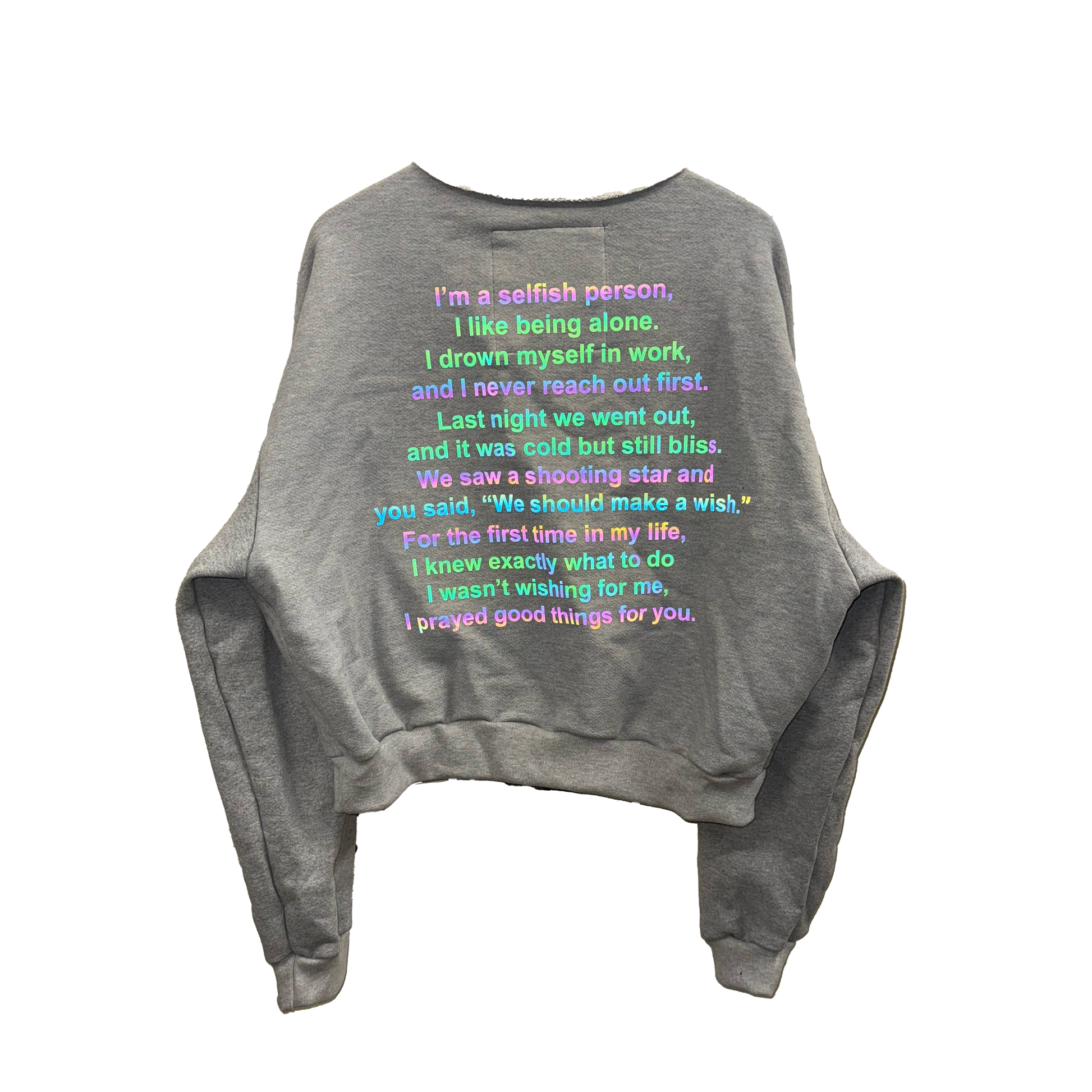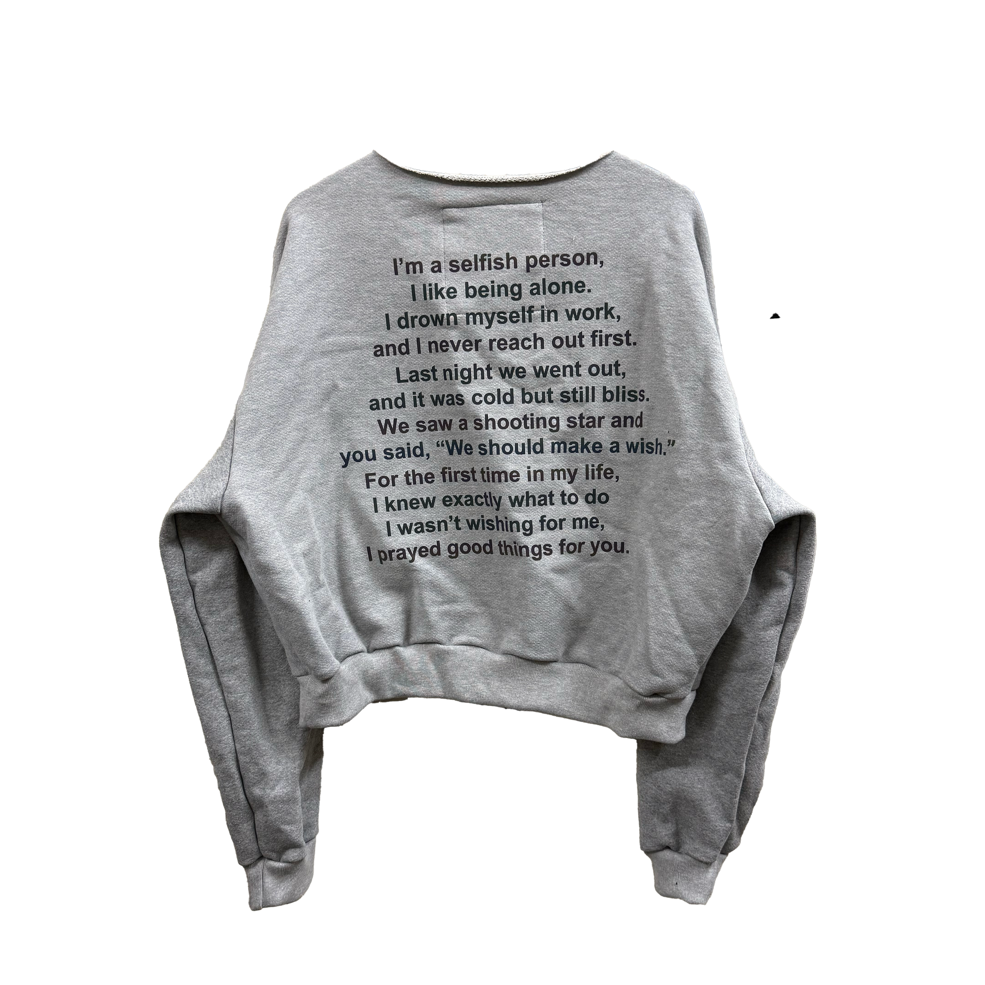 I liked the crewneck I made yesterday so much I decided to turn it into a genuine product. The crewneck features a slightly longer 3" Waistband that isn't cinched as much as the usual hoodies, it is a boxy and wide fit. The crewneck features a raw neckline, originally I did a raw neckline on the first crewneck because I didn't have enough material to make a hood but i've decided to keep it as a feature because I liked it so much.