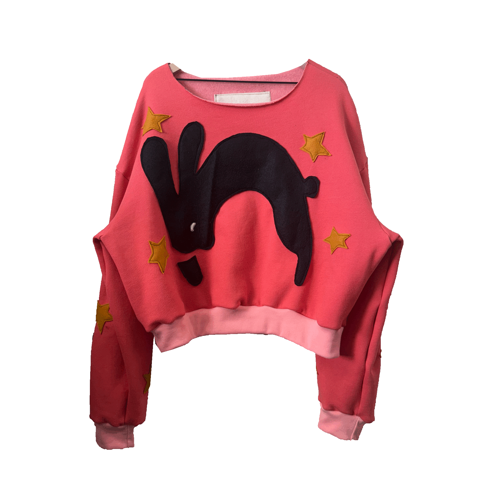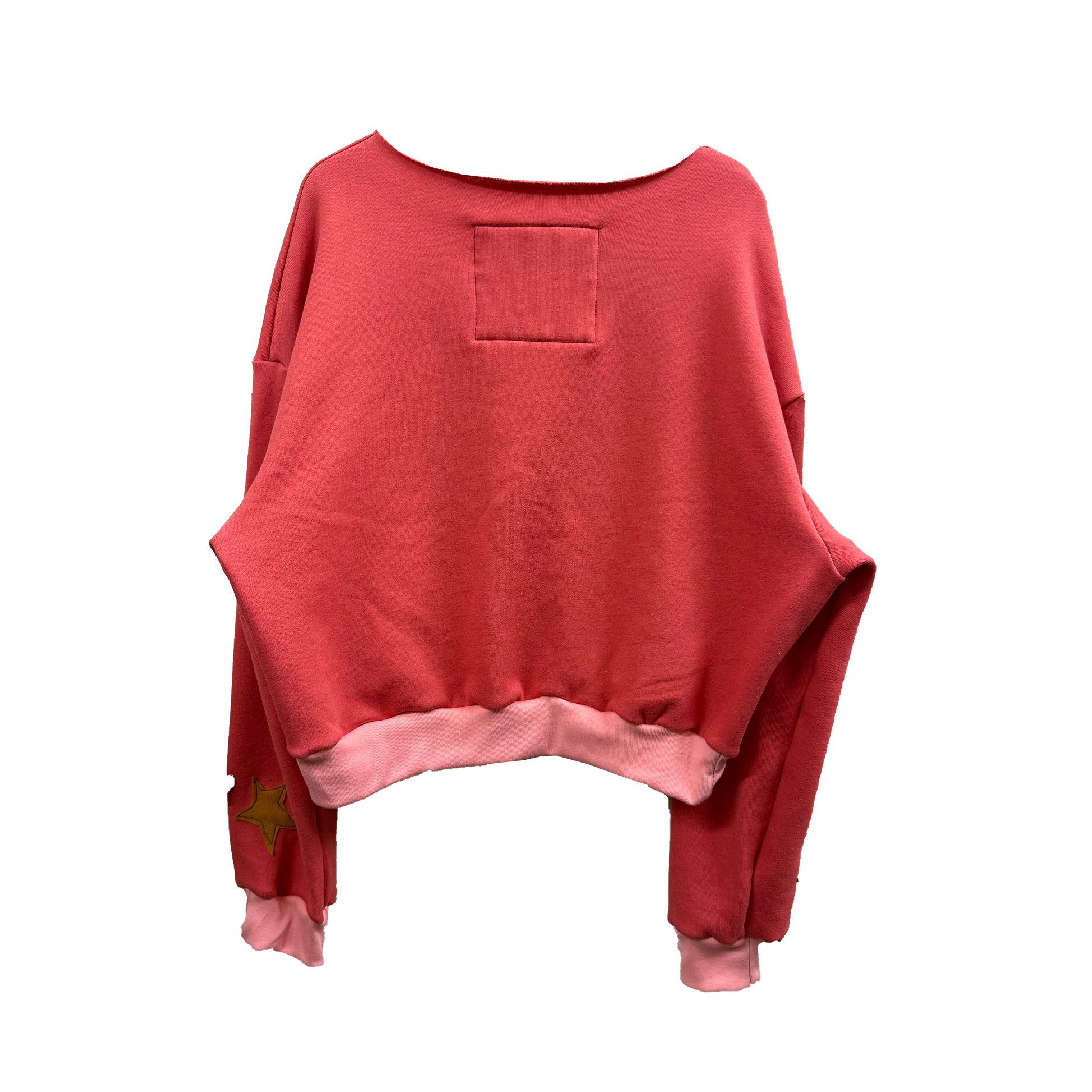 Super Hopper- Coral Baby Fleece Raw Neck Crewneck
